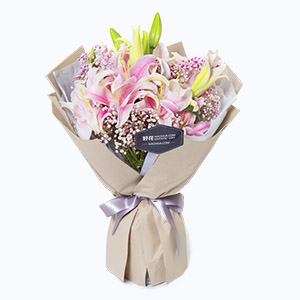 Cherish珍愛鮮花系列9枝粉玫瑰+梔子葉